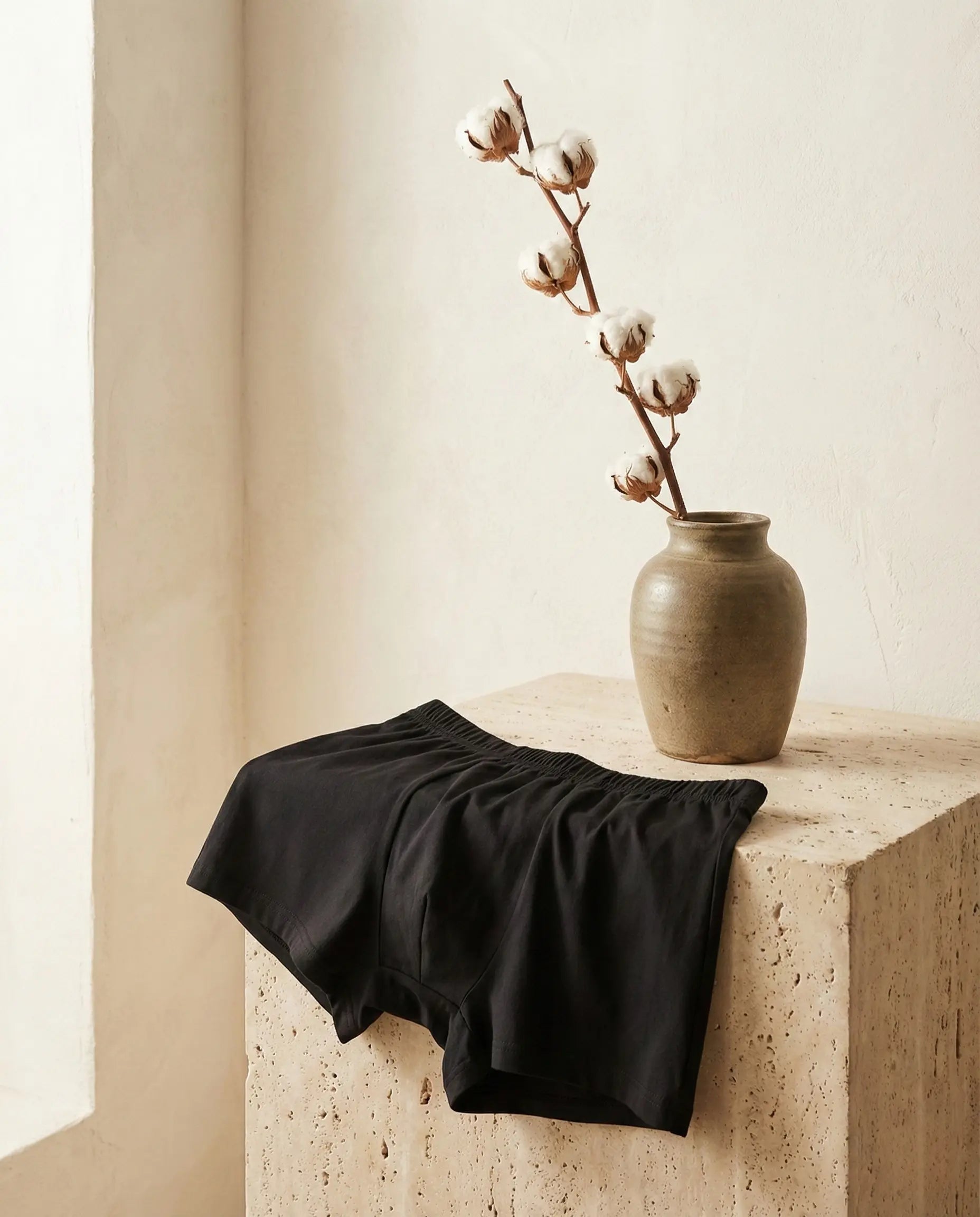 Oakdorn boxers are made from 100% GOTS-certified organic cotton, without synthetic blends like polyester or elastane. Instead of plastic-based stretch fabrics, we focus on breathable natural cotton, a slightly relaxed fit, and a cotton-wrapped waistband — creating a more comfortable and more natural option for everyday wear.